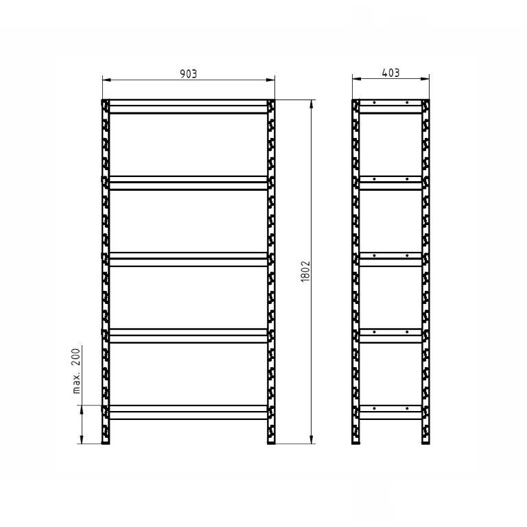 - βάρος ανά ράφι 200 kg