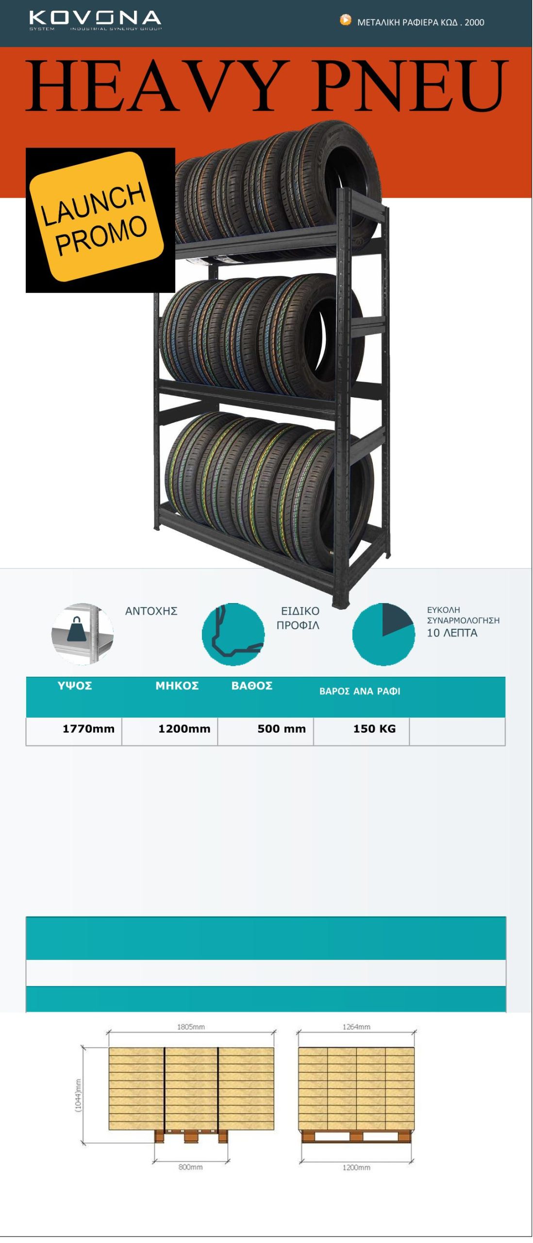 Ραφιέρα μεταλλική Heavy pneu χρώμα Μαύρο με 4 ράφια(θέσεις) μεταλλικά. Είναι ιδανική για την οργάνωση και αποθήκευση των ελαστικών των αυτοκινήτων . Η συσκευασία περιλαμβάνει κολώνες, κομβοελάσματα, οδηγίες συναρμολόγησης.