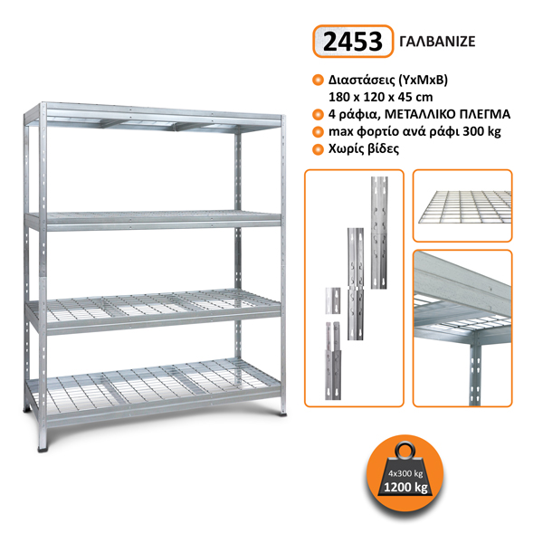 Μεταλλική ραφιέρα WIRE RIVET 180x120x45cm, 4x300kg Κωδικός 2453